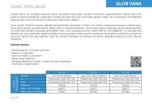 Ayvaz GV-16 Glob Vanalar, yüksek basınç ve sıcaklıklarda kullanılmaya uygun vanalardır. Basınç kayıpları diğer vanalara göre daha fazladır. Düşey hareketli sübap ile yatay duran metal sitin, yüzey yüzeye oturmasıyla iç sızdırmazlık sağlanır.