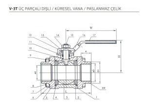 V-3T Üç Parçalı Paslanmaz Çelik Küresel Vana